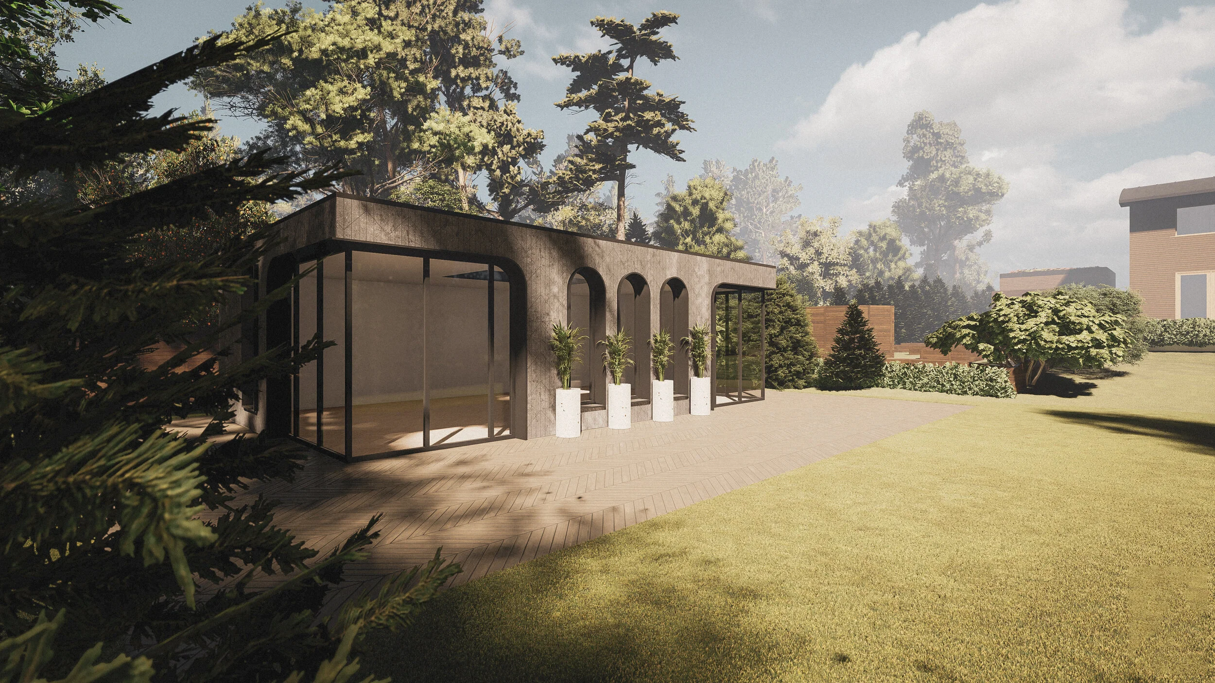 We visit your site, discuss your vision for the space (office, studio, pavilion), and review feasibility including budget. Our architects produce initial sketches and mood boards to align on direction.
